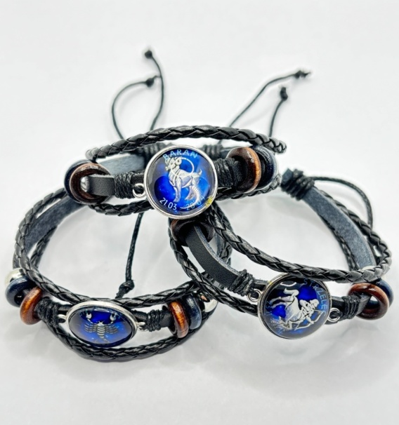Bransoletka skórzana ze znakami zodiaka
