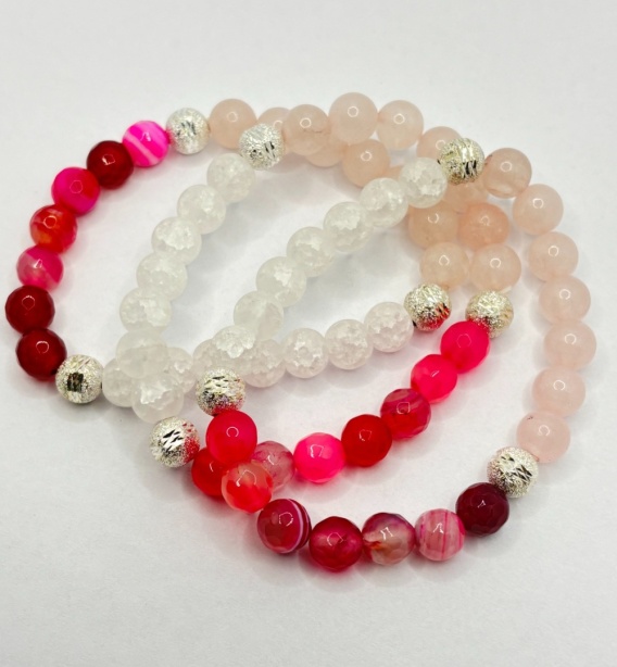 Bransoletka z agatem,kwarcem różowym,kwarcem lodowym