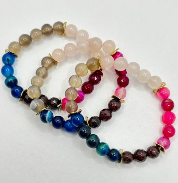 Bransoletka z kwarcem rózowym,agatem,granatem,kwarcem dymnym