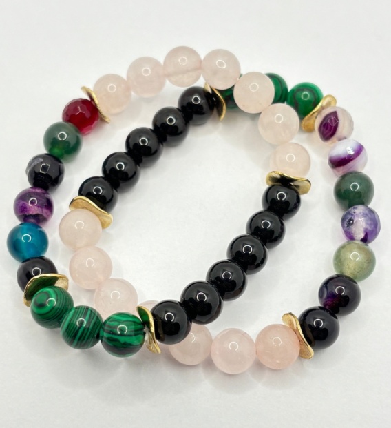 Bransoletka z kwarcem rózowym, agatem,malachitem,obsydianem