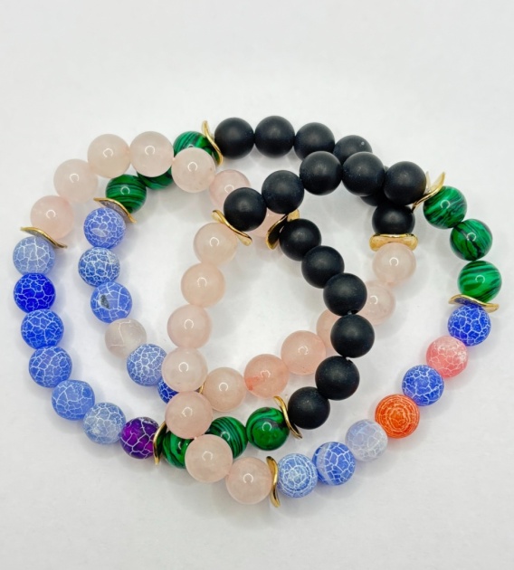 Bransoletka z kwarcem różowym,agatem,obsydianem,malachitem