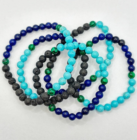 Bransoletka z malachitem,turkusem,lawa, lapisem lazuli