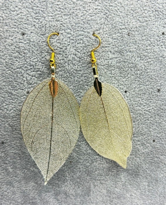 Kolczyki z naturalnego galwanizowanego liścia