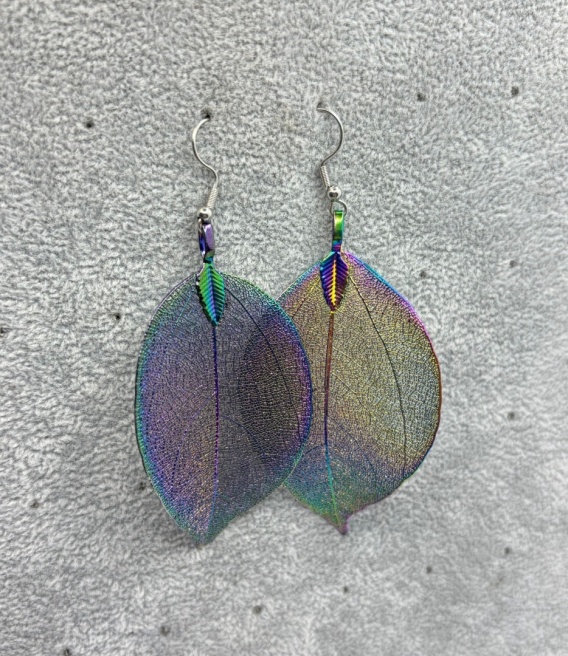 Kolczyki z naturalnego galwanizowanego liścia