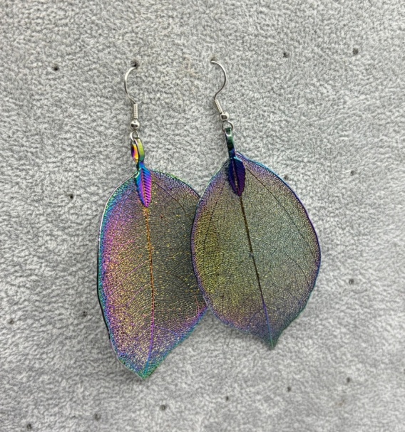 Kolczyki z natyralnego galwanizowanego liścia