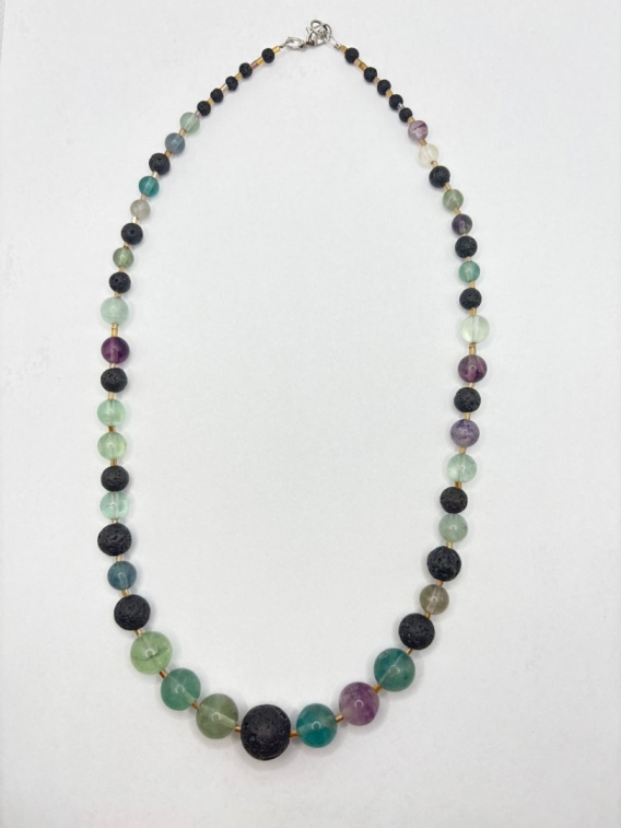 Naszyjnik z fluorytem i lawą wulkaniczną