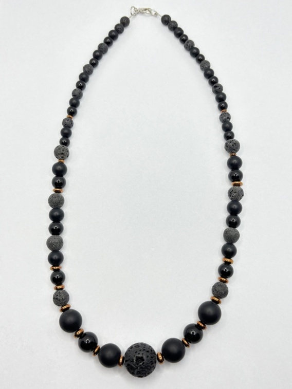 Naszyjnik z lawą wulkaniczną,onyksem i obsydianem