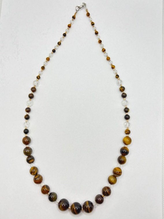 Naszyjnik z tygrysiego oka i kryształem górskim