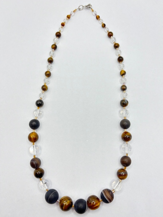 Naszyjnik z tygrysiego oka,kryształem górskim i agatem