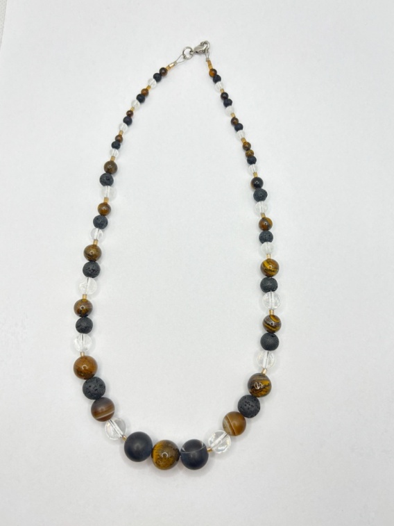 Naszyjnik z tygrysiego oka,kryształem górskim,lawą wulkaniczną