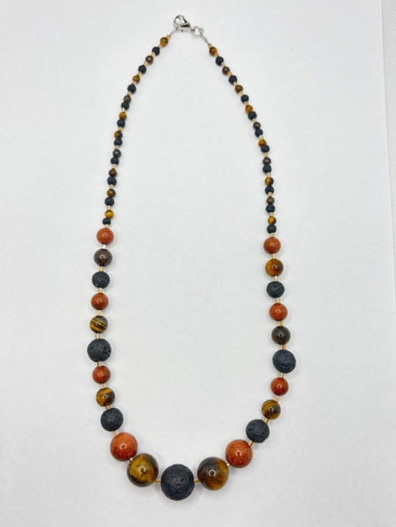 Naszyjnik z tygrysiego oka,lawą wulkaniczną
