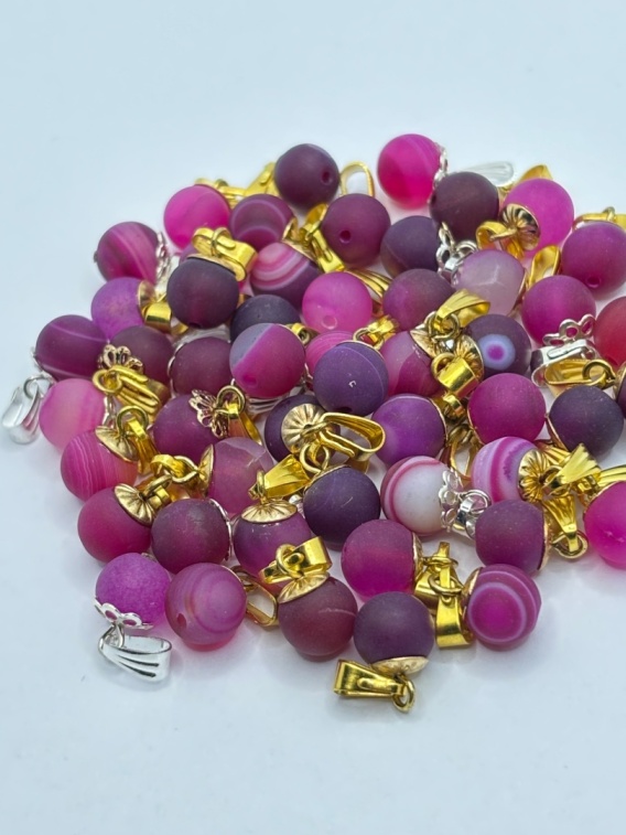 Zawieszka z agatem - kulka - odcienie różu