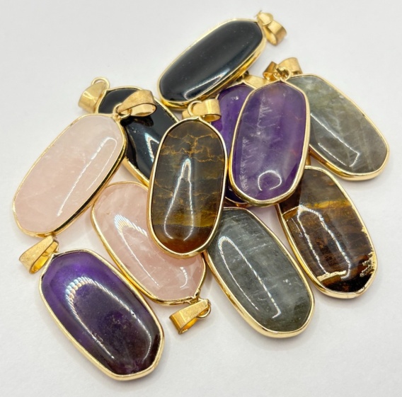 Zawieszka z amestem , ,onyksem ,kwarcem różowym ,tygrysim okiem, labladorytem