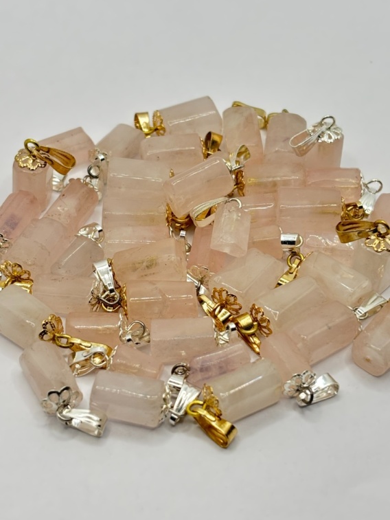 Zawieszka z kwarcem różowym - walec - 23 mm